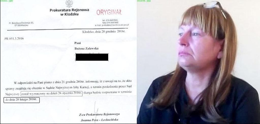 Skarga została przekazana do Prouratury Krajowej, stamtąd do Porkuratury Okręgowej w Świdnicy i dalej do Prokuratury Rejonowej w Kłodzku właśnie do zastępcy Prokuratora Rejonowego Joanny Pery-Lechocińskiej.