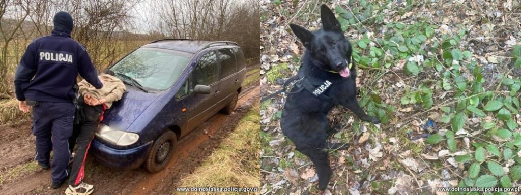 W trakcie ucieczki kierujący wjechał w drogę szutrową, gdzie uszkodził swój pojazd, a następnie kontynuował pieszo próbę oddalenia się przed policjantami. Dla mężczyzny dużym zaskoczeniem musiał być fakt, iż na pokładzie policyjnego radiowozu znajdował się policyjny pies służbowy szkolony do tropienia śladów ludzi, który dołączył do pościgu. Po kilkuset metrach w terenie leśnym mieszkaniec gminy Lwówek Śląski został zatrzymany przez funkcjonariuszy. Mimo to Zuma w dalszym ciągu kontynuowała swoją pracę i w wyniku podjęcia tropu odnalazła wyrzucone przez kierującego kluczyki od pojazdu.
