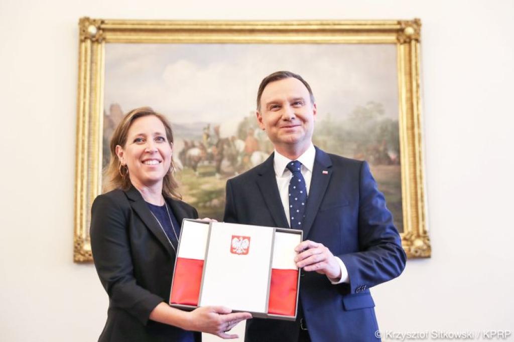 Prezydent Andrzej Duda spotkał się we wtorek z prezes YouTuba Susan Wojcicki. Prezydent wręczył jej, jako Ambasadorce Polskości, biało-czerwoną flagę.