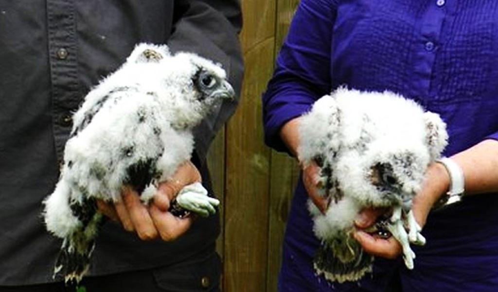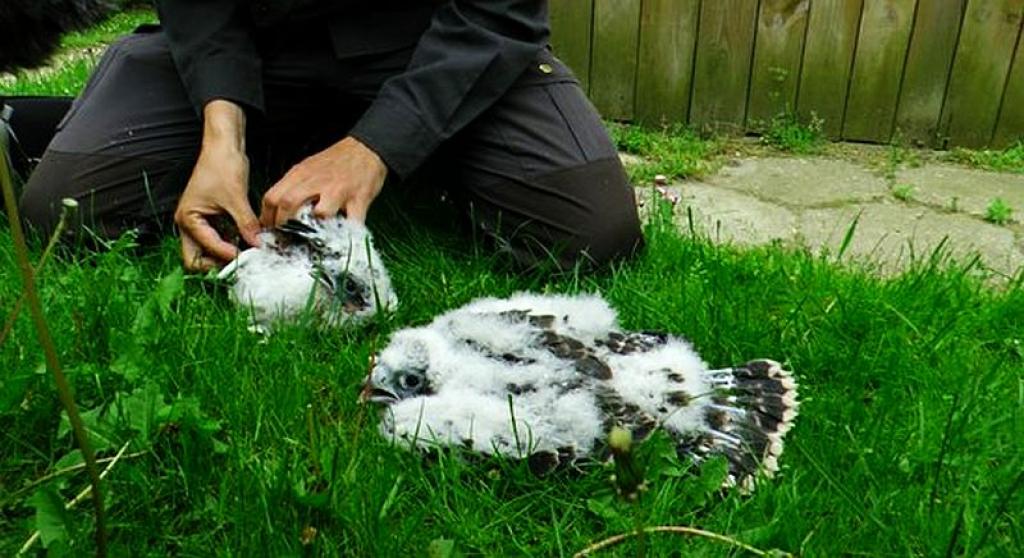 Młodym sokołom spod gęstej warstwy puchu już zaczęły wyrastać pióra. Ich wole są pełne mięsa, a to oznacza, że w ciągu najbliższych dwóch tygodni zostaną przeniesione do sztucznego gniazda. Podczas przenosin ptaki będą miały drugi i ostatni kontakt z ludźmi.