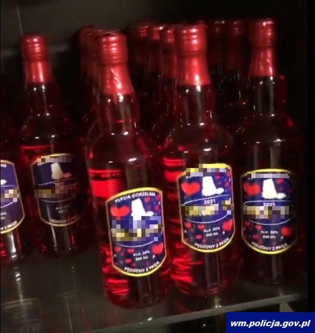 Destylator, 3 beczki o łącznej zawartości ponad 500 litrów z półproduktem, 60 litrów gotowego do rozlania alkoholu, a także ponad 50 półlitrowych butelek opatrzonych etykietami z „marką” sugerującą, że zawartość procentowa trunku jest na poziomie 50 procent. Dodatkowo urządzenia do zakładania zakrętek i cały sprzęt do produkcji alkoholu. To wszystko zabezpieczyli policjanci wydziału do walki z przestępczością gospodarczą. 42-letniemu mężczyźnie grozi teraz kara do 2 lat pozbawienia wolności. Wyrabianie bowiem alkoholu etylowego bez wymaganego wpisu do rejestru, podlega grzywnie, karze ograniczenia wolności albo pozbawienia wolności do roku. Jeżeli alkohol etylowy jest znacznej wartości, osoba go wytwarzająca podlega grzywnie, karze ograniczenia wolności albo pozbawienia wolności do lat 2.