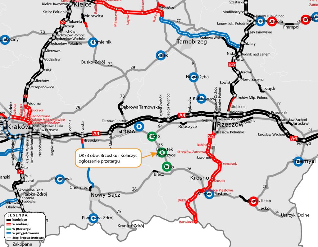Budowa obwodnicy Brzostku i Kołaczyc wraz z przygotowywaną przebudową istniejącego odcinka DK73 pomiędzy Pilznem a Brzostkiem oraz obwodnicami Jasła i Pilzna spowodują, że kierowcy zyskają finalnie ok. 35 kilometrów wygodnej i bezpiecznej trasy, w dwóch trzecich poprowadzonej nowym śladem. Pozwoli to nie tylko wyprowadzić ruch, jaki koncentruje się w tych miastach, ale przede wszystkim poprawić przepustowość i bezpieczeństwo na całym ciągu DK73.