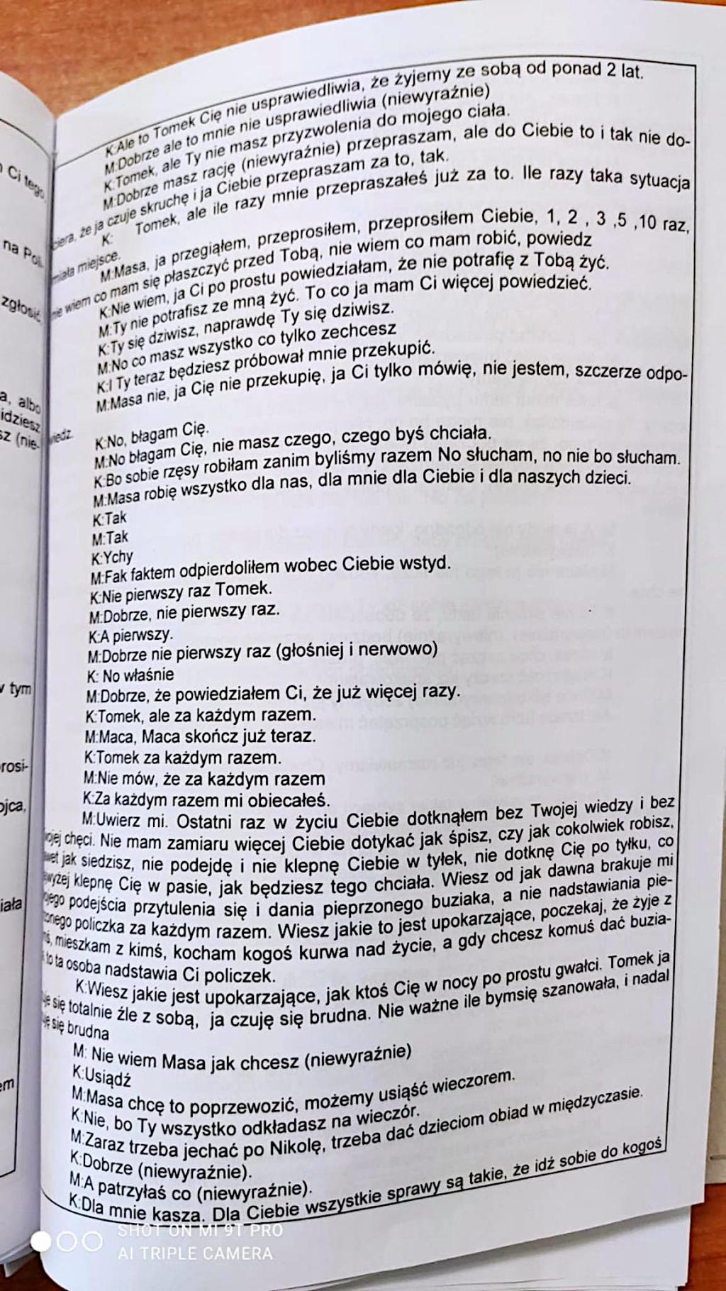Ale Marcela go dręczyła, by usiadł z nią i rozmawiał. Wiemy to, bo kobieta sama tę rozmowę nagrała. Stenogram z tej rozmowy dołączamy do niniejszego tekstu.