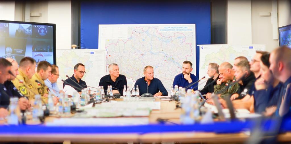 Premier Donald Tusk przewodniczył kolejnemu posiedzeniu sztabu kryzysowego we Wrocławiu. Szef rządu podzielił się wnioskami z rozmów z dotkniętymi dramatem ludźmi. Mieszkańcy oczekują m.in. większej obecności policji, wojska i samorządowców w terenie oraz interwencji w sprawie drastycznego wzrostu cen niezbędnych produktów. Rząd zabezpieczy również kolejne środki na odbudowę zniszczonej infrastruktury, m.in. pozyskując wsparcie z Unii Europejskiej.