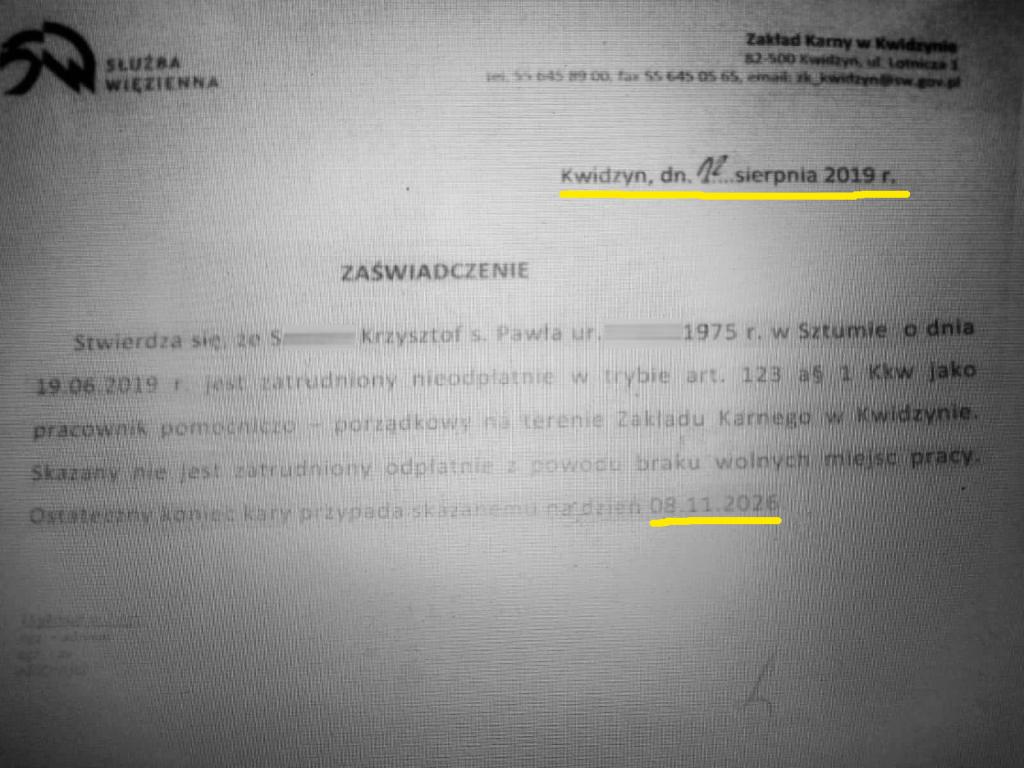 - Krzysztof S. już teraz odbywa karę nie w zakładzie zamkniętym, ale w pół otwartym zakładzie karnym w Kwidzynie! To umożliwia mu zarządzanie kancelarią adwokacką, choć on sam nie ma uprawnień adwokata.