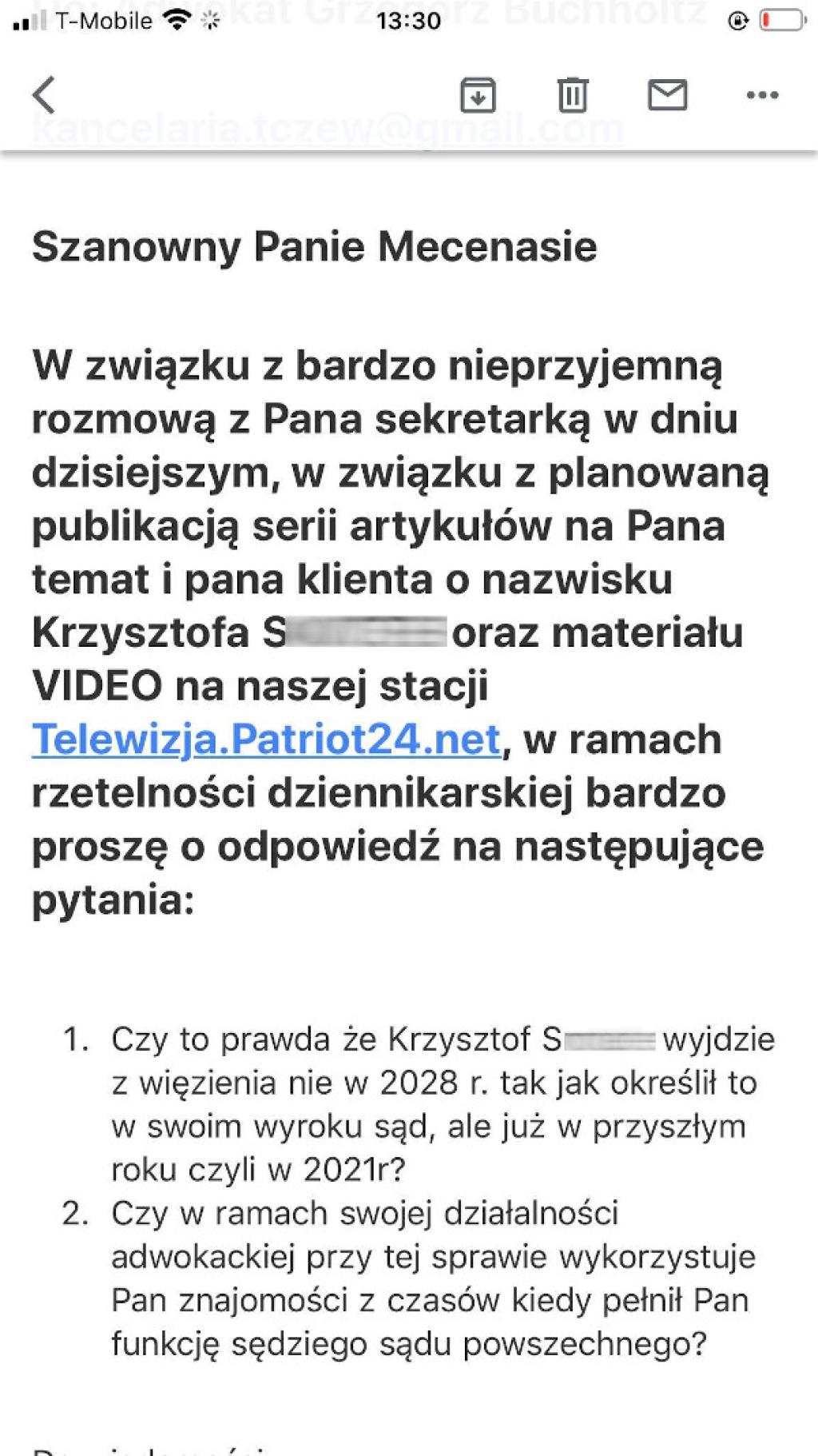 - Czy w unikaniu twardej, zasądzonej kary i umożliwianiu mu dalszej działalności rzekomo prawniczej z więzienia jest adwokat Grzegorz Buchholz z Tczewa, który w przeszłości i pełnił funkcję sędziego III Wydziału Karnego Sądu Wojewódzkiego w Gdańsku?