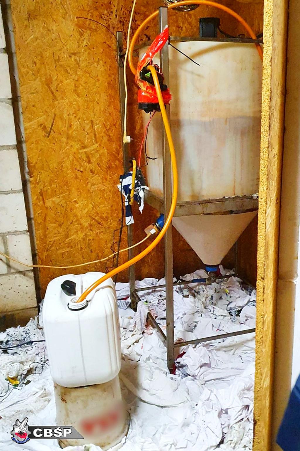 Na miejscu funkcjonariusze ujawnili pomieszczenia zaadaptowane na laboratorium do produkcji narkotyków, wyposażone w mieszalnię z reaktorem, miejsca do przechowywania prekursorów oraz suszarnie, w której krystalizował się produkt. Policjanci zabezpieczyli 204 kg klefedronu oraz liczne prekursory do produkcji narkotyków. Taka ilość narkotyków mogła posłużyć do odurzenia ponad 500 000 osób. Czarnorynkowa wartość zabezpieczonych narkotyków szacowana jest na 8 mln PLN.