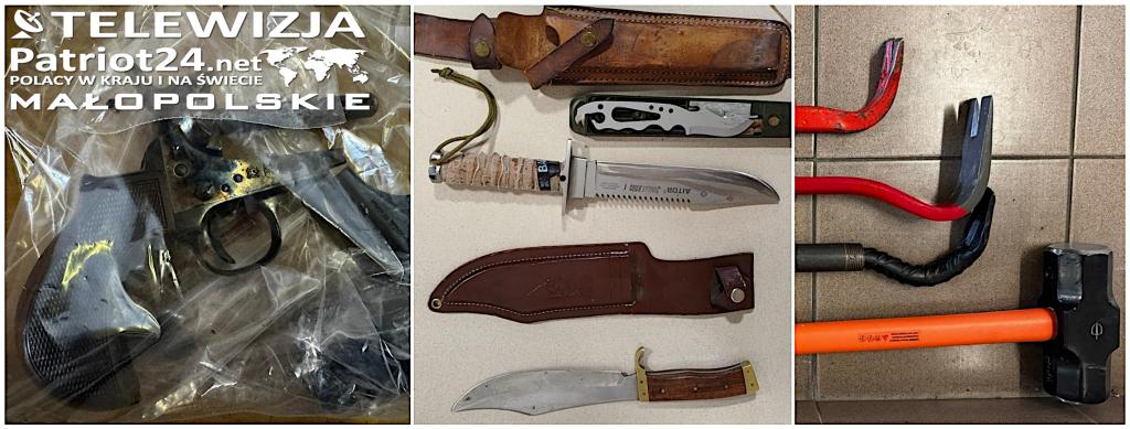 15 maja br. policjanci z Komisariatu Policji VII w Krakowie wspólnie z funkcjonariuszami Wydziału Kryminalnego Komendy Wojewódzkiej Policji w Krakowie oraz Wydziału dw. z Przestępczością przeciwko Mieniu Komendy Miejskiej Policji w Krakowie pojechali do jednej z posesji na terenie Nowej Huty, gdzie jak ustalili mogą przebywać podejrzewani. Kiedy policjanci weszli do budynku, najpierw natrafili na 50-latka, który po sprawdzeniu w policyjnych bazach okazał się być osobą poszukiwaną w celu doprowadzenia do Prokuratury Rejonowej Kraków-Podgórze. Następnie sprawdzony został 37-latek, który był „mózgiem” złodziejskiego procederu. Mężczyźni zostali zatrzymani i przewiezieni do komisariatu na os. Złotej Jesieni w Krakowie, gdzie złożyli wyjaśnienia. Policjanci przeszukali dom i zabudowania, z których korzystali zatrzymani, gdzie znaleźli m.in. część przedmiotów, które pochodziły z kradzieży. Ponadto funkcjonariusze ujawnili i zabezpieczyli m.in. broń palną wraz z amunicją, ponad 50 gramów amfetaminy, biżuterię, drogocenne przedmioty, alkohole, perfumy, pieniądze oraz przedmioty służące do włamań. Zabezpieczona broń palna wraz z amunicją została przekazana do analizy balistycznej.