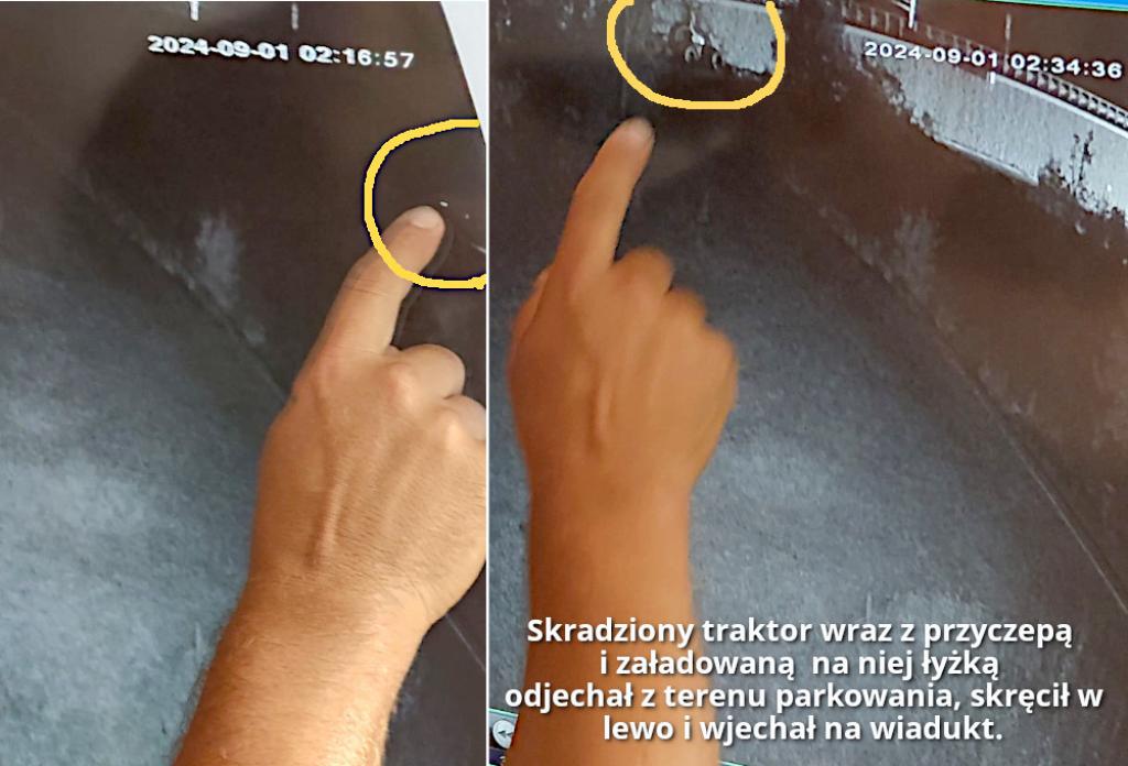 W ramach działań Biura, we współpracy z Pokrzywdzonym i Funkcjonariuszami Policji ustalono, że do kradzieży ciągnika i sprzętu doszli w niedzielę, to jest 01 września 2024 roku, około godziny 4.30.